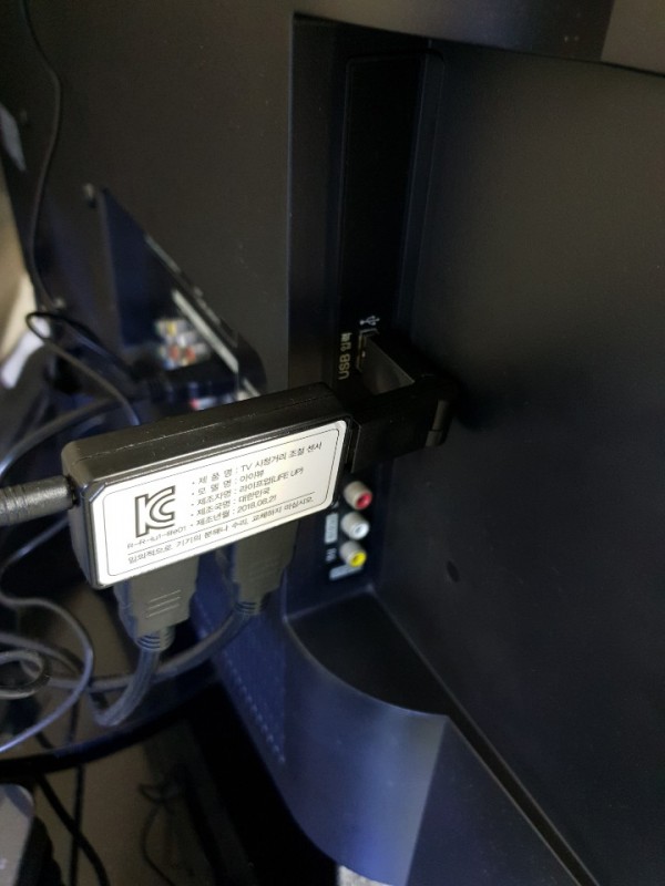 아이뷰 허브를 TV에 연결할때 USB 연결부분에 간섭이 생길경우 사진에서 보는바와 같이 젠더를 활용하여 연결해주세요